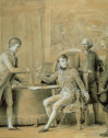 “La gravure qui le représente agenouillé à Saint-Étienne-du-Mont près du tombeau de sainte Geneviève, la patronne de la capitale, connaît un immense succès”