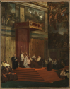 “La capitale du catholicisme retrouve le cycle des missions et des triduum tandis que le pape regagne son trône lors des célébrations au Quirinal et à Saint-Pierre, dont Ingres a saisi le motif”